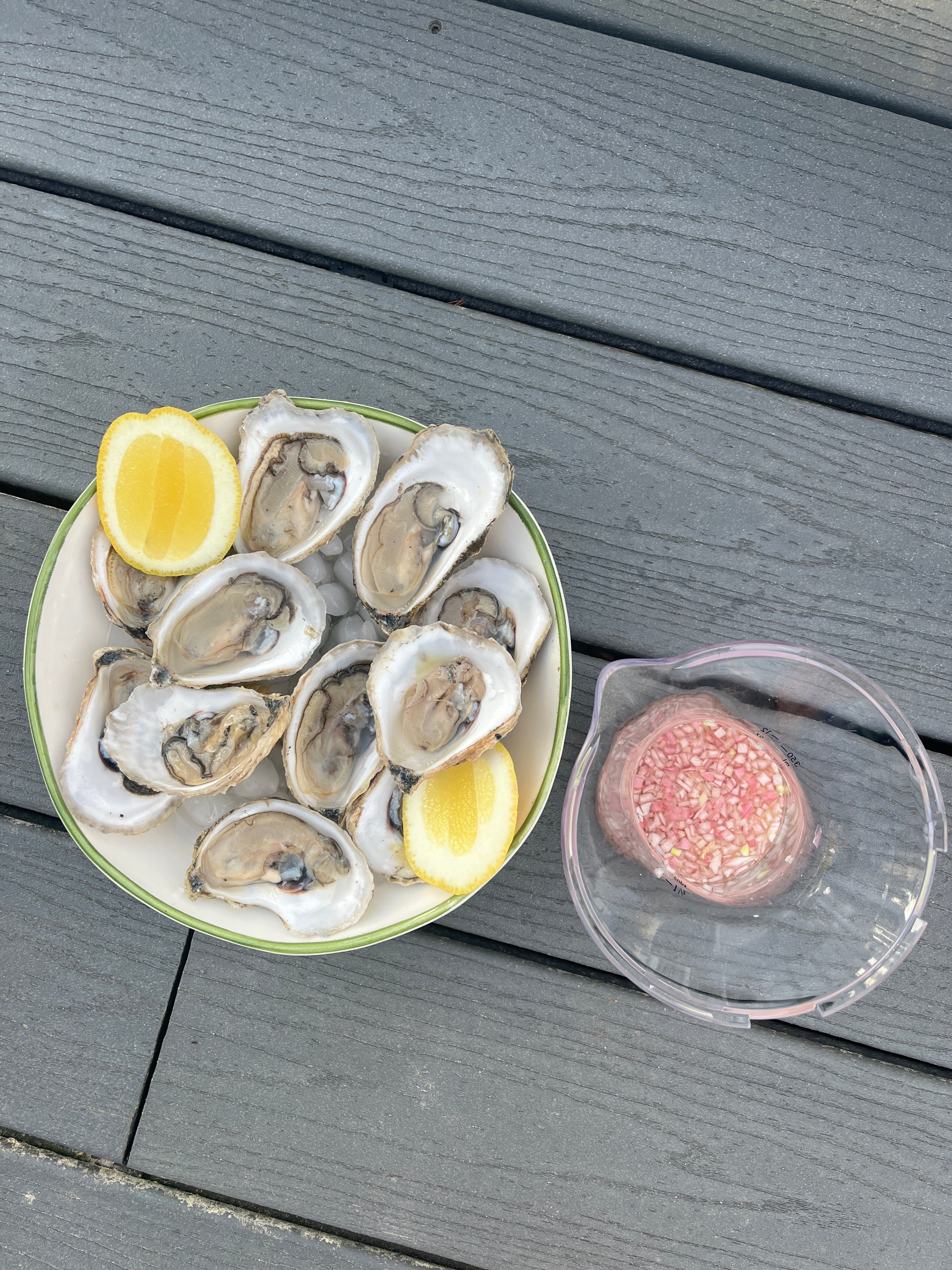 I haven’t got a big yarn today, just wanted to share the mignonette I made for our oysters, should you find yourself with a dozen fresh ones this summer. If anyone knows why the word mignonette came to be the name for the sauce you put on an oyster, let me know. Five minutes of googling did not answer the Q and I remain unsatisfied.
